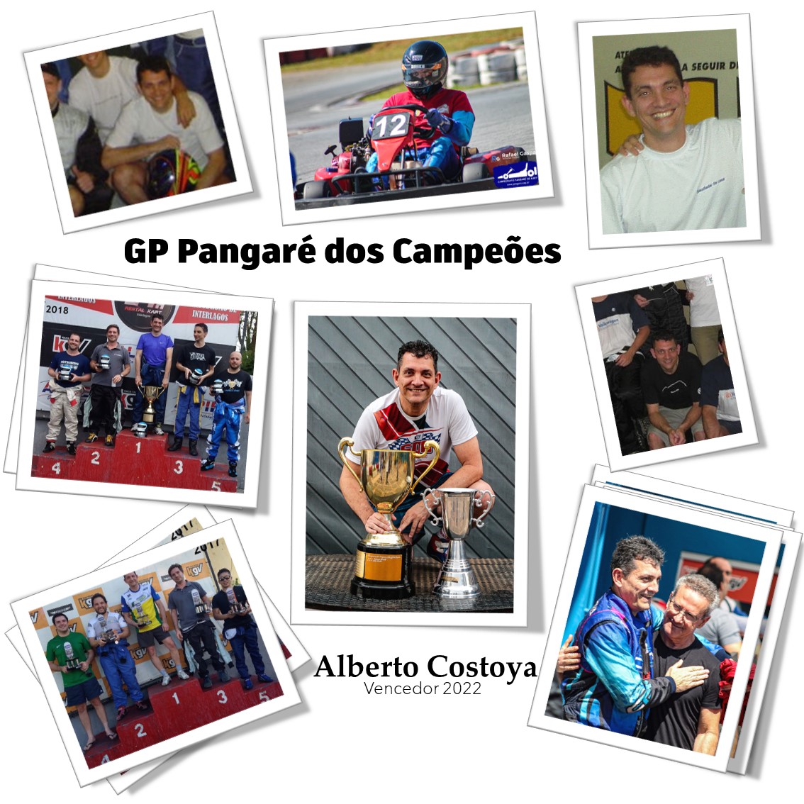 Nosso amigo Alberto Costoya é um dos pilotos mais antigos do Campeonato Pangaré, tendo iniciado sua carreira conosco em 17/05/2003, defendendo a equipe Saudade de Casa, quando chegou ao pódio já na sua primeira corrida no Kart-in Jaguaré. Ele se classificou para o GP dos Campeões diversas vezes desde então, e esteve perto da vitória na maioria delas. Agora, em 2022 ele foi campeão mais uma vez, tornando-se o maior vencedor da Historia do GP dos Campeões, com 7 títulos (2005, 2008, 2009, 2014, 2017, 2018 e 2022).